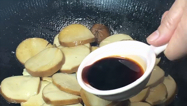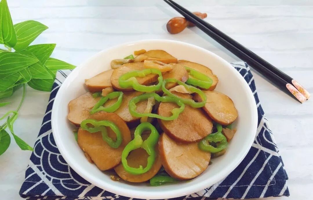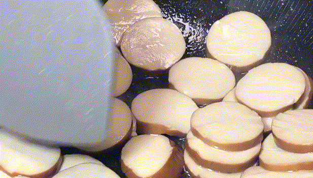 3. 不粘锅中放入适量的油,将素鸡片放入翻煎一下。